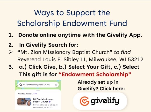 Your gift to the Mt. Zion Scholarship Endowment Fund helps our students pursue their education and reach their full potential.